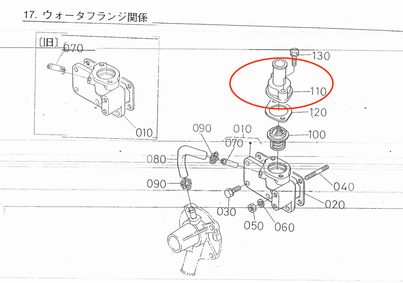 Thermostaathuis | aansluiting aan koelslang Kubota