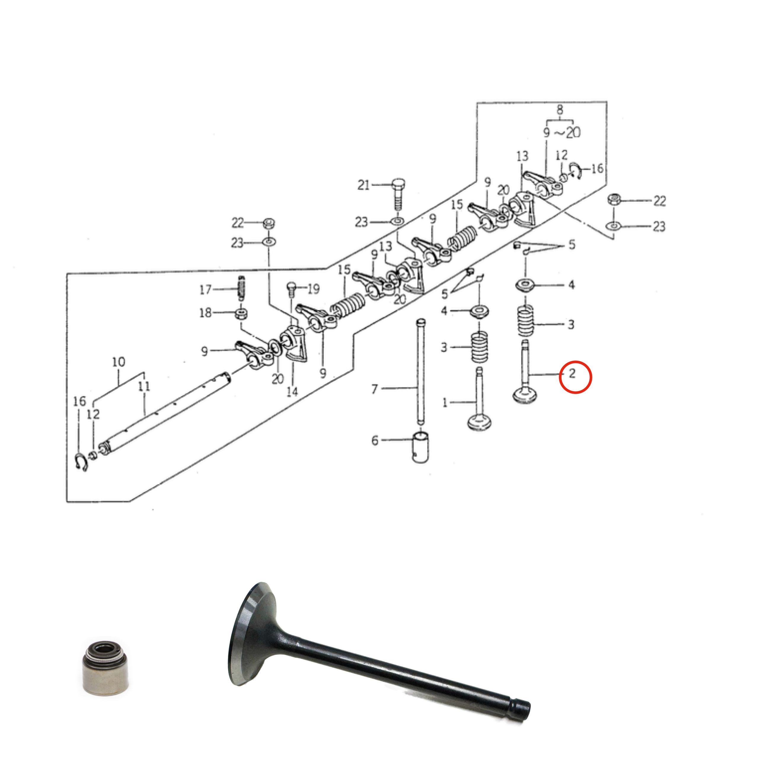 Inlaatklep Yanmar 3TNV70 | 3TNM72 | Goldoni | Fuchs | John deere | Takeuchi | Hitachi