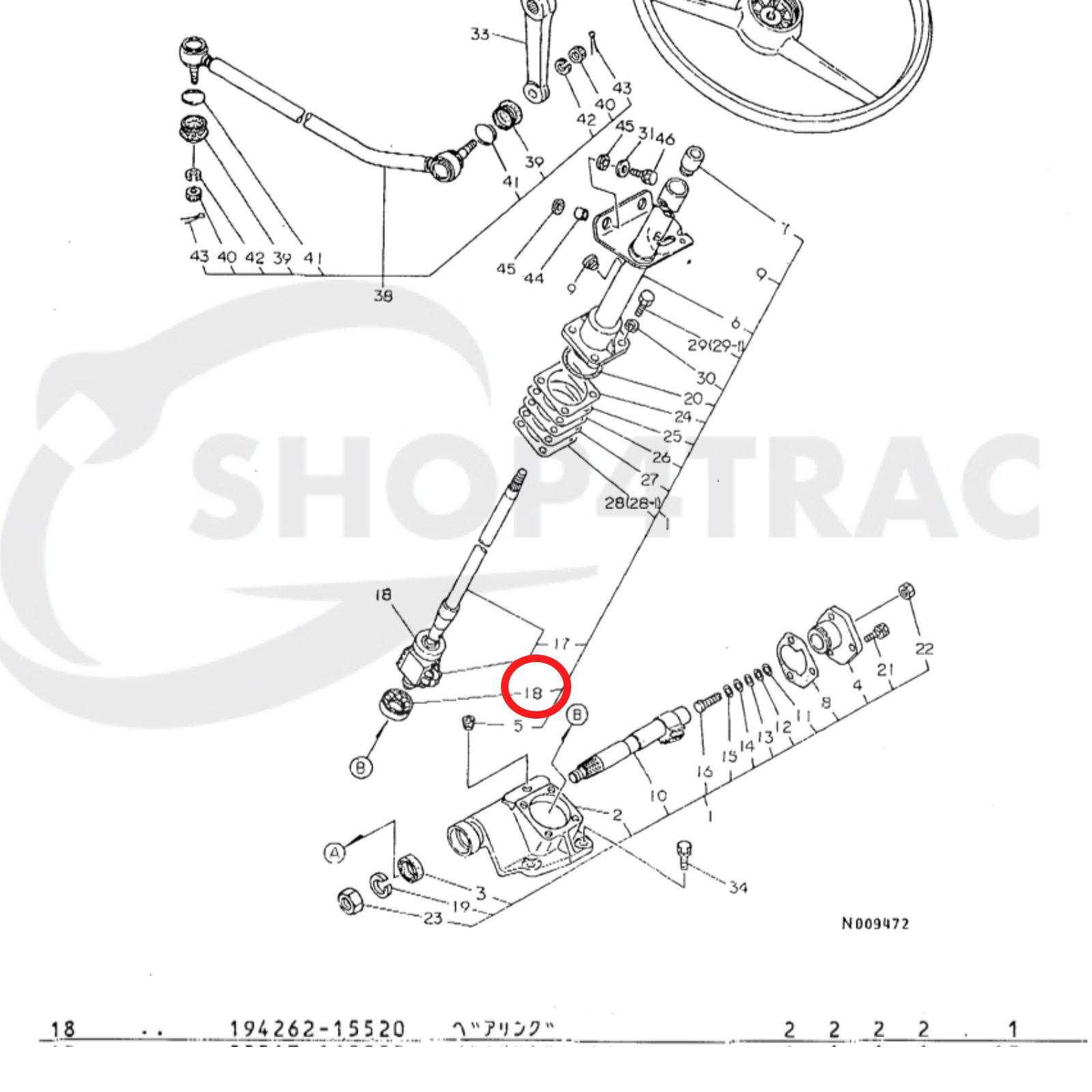 Stuurkolom lager Kubota A serie, B serie | Yanmar